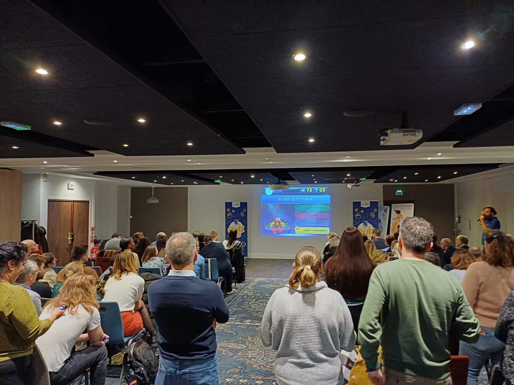 Dans le cadre d’un séminaire d’entreprise à Lesquin, près de Lille, plus de 100 collaborateurs se sont rassemblés pour participer à notre Quiz Interactif, une animation team building conviviale et dynamique. L’objectif ? Partager un moment festif, renforcer les liens entre collègues et développer l’esprit d’équipe dans une ambiance détendue et bienveillante.