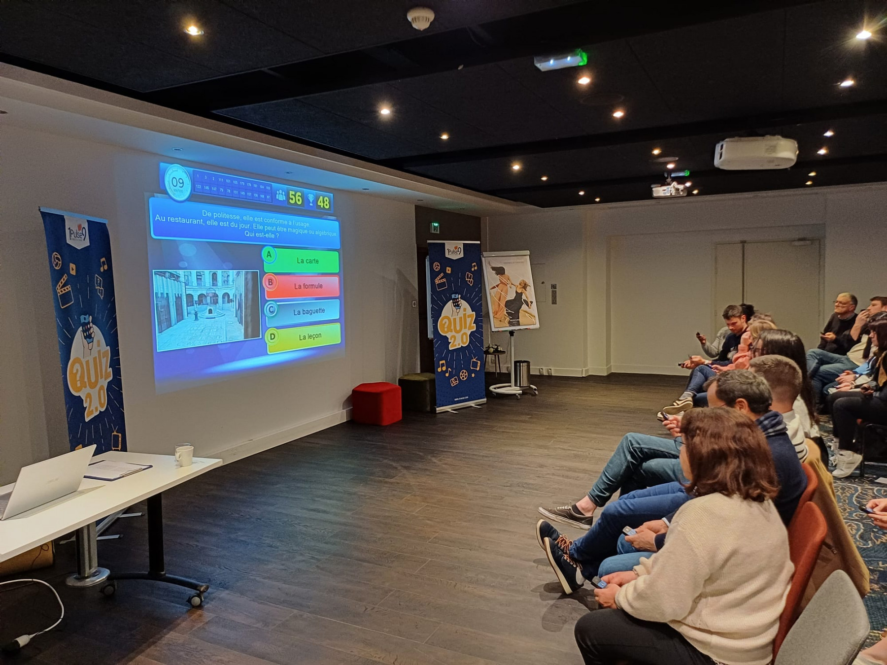 Répartis en équipes, les participants ont répondu à plusieurs questions sur des thèmes variés : musique, TV, séries, cinéma, énigmes…